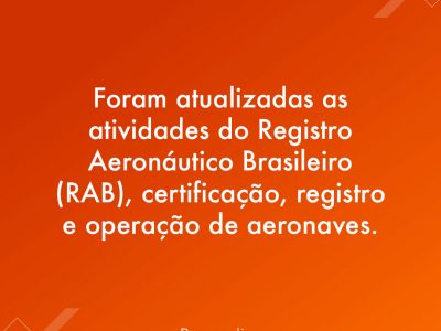 Provisory Measure 1089 updated on rules about activities of the Aeronautical Registry (RAB), certification, registration, and operation of aircraft. Please find below... Read More